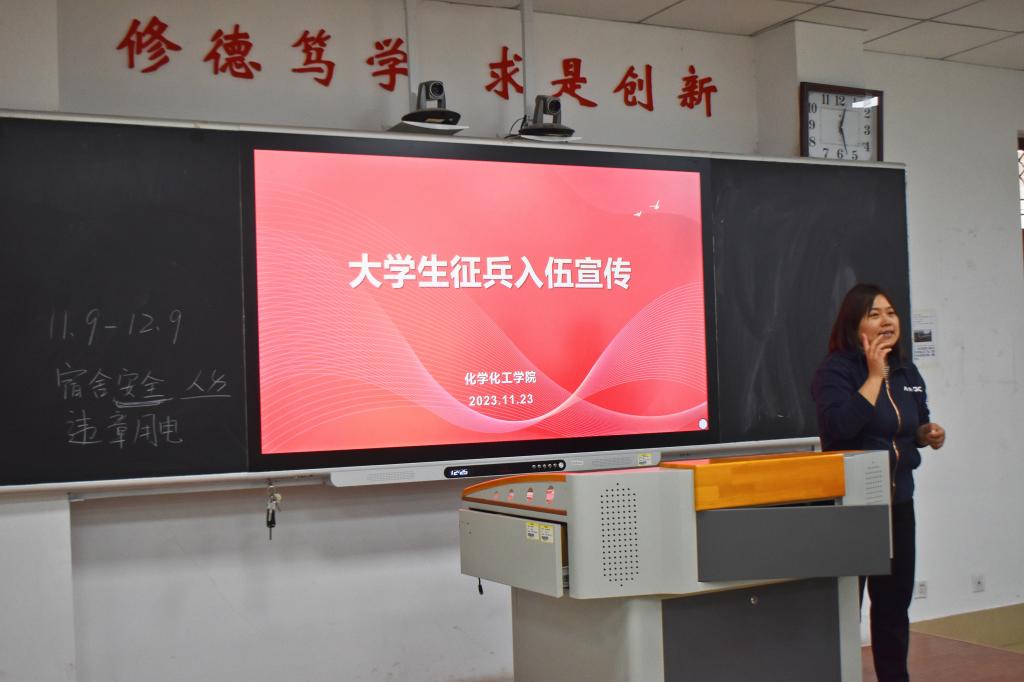 会议伊始,王庆美对征集对象、征集条件、征集办法等做了详细介绍。接着,她对相关征兵优抚政策进行解读。最后,她明确表示大学生是国防和军队建设的重要后备力量,也是我国重要的人才资源,希望青年能积极投身国防事业,为国家安全贡献自己的一份力。