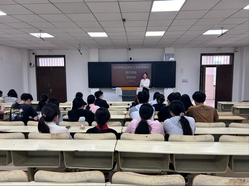 会议伊始,高靖对于成功上岸同学的到来表示热烈的欢迎,并希望台下的同学能够认真聆听汲取经验,为日后的复习道路指引方向。随后,2020级化学工程与工艺王文远、2020级能源化学工程孔凯、2022级应用化学专升本一班李丛丛、2020级化学师范张淑琪、2020级环境科学与工程李玟玟五位考研上岸同学依次上台分享自己在英语方面的学习经验。
