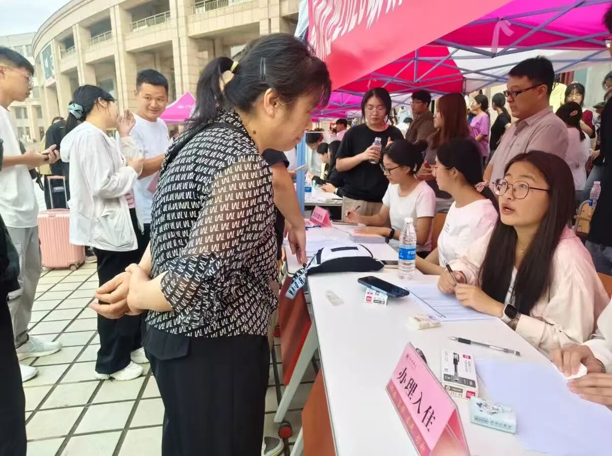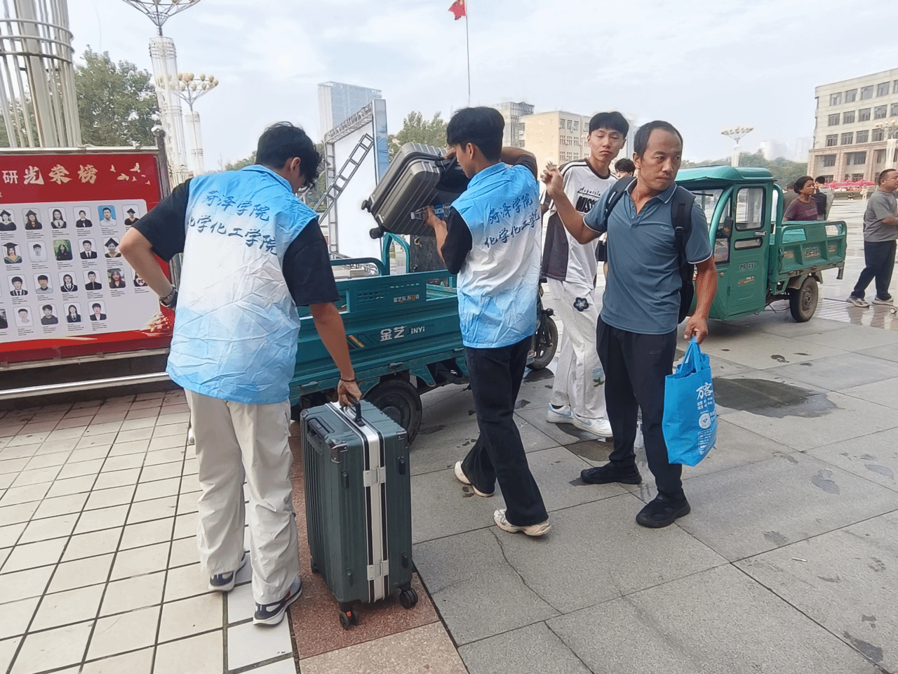 “从校门口到宿舍门,全程有人‘管’!”这是新生们对本次迎新最直观的感受。为了让报到流程“不绕路、不耗时”,学院提前搭建“迎新服务矩阵”:校园入口设“化工引导岗”,志愿者举着印有学院名称的彩色引导牌,一眼就能被新生识别;报到区采用“分区流水线”模式,人脸识别、智慧学工扫码、意外险办理三个工位并排设置,新生站在原地即可完成所有手续,志愿者还会同步递上装有校园地图、军训须知的“迎新大礼包”;宿舍区则有“专属陪送员”,不仅帮着扛行李、找床位,还会现场演示宿舍电器使用方法,甚至贴心提醒“阳台晾衣杆的高度适合晒军训服”。一位来自外省的新生家长看着忙碌的志愿者,忍不住点赞:“孩子第一次离家,看到你们这么上心,我们就放心了!