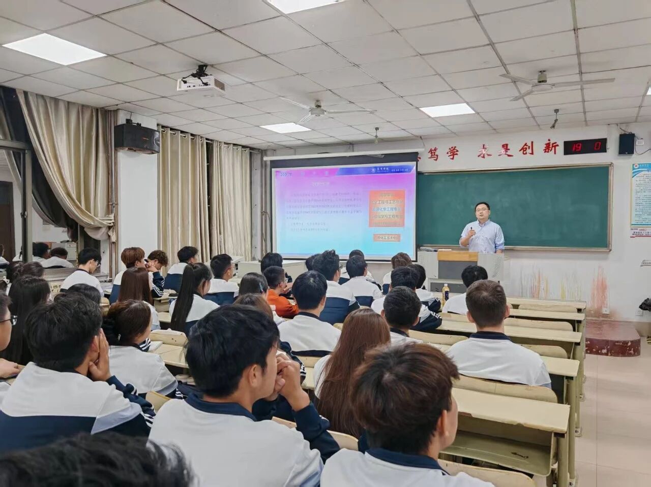 整场活动打破“教师单向输出”模式,增设“新生提问互动”与“行业前景交流”环节。新生们围绕“本科阶段如何参与科研项目”“化工专业的新兴就业方向”等问题积极提问,老师们结合自身经历与行业动态逐一解答,现场氛围热烈。