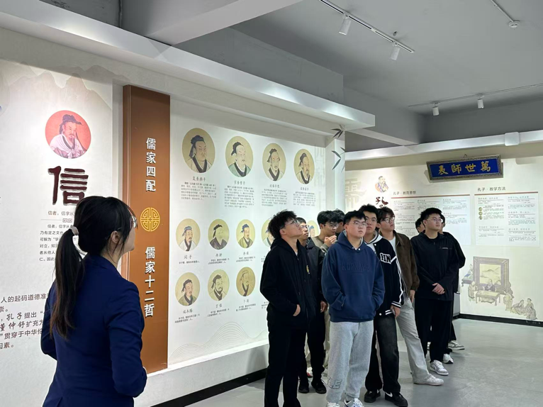 在博物馆讲解员的专业引导下,新生们沿着“师道溯源—名师风范—教育变迁”的参观脉络有序前行。从古代孔子“有教无类”的教育理念、近代陶行知“生活即教育”的实践探索,到当代“时代楷模”教师的感人事迹;从泛黄的百年教案、老式黑板擦等实物展品,到还原乡村课堂的场景模型、记录教育发展的影像资料——丰富的展陈内容全方位勾勒出中国教师群体的精神图谱。同学们不时驻足凝视展柜中的老物件,认真记录讲解中的关键细节,对“学高为师,身正为范”的师者准则,从课本上的文字概念转化为可感可知的精神共鸣。