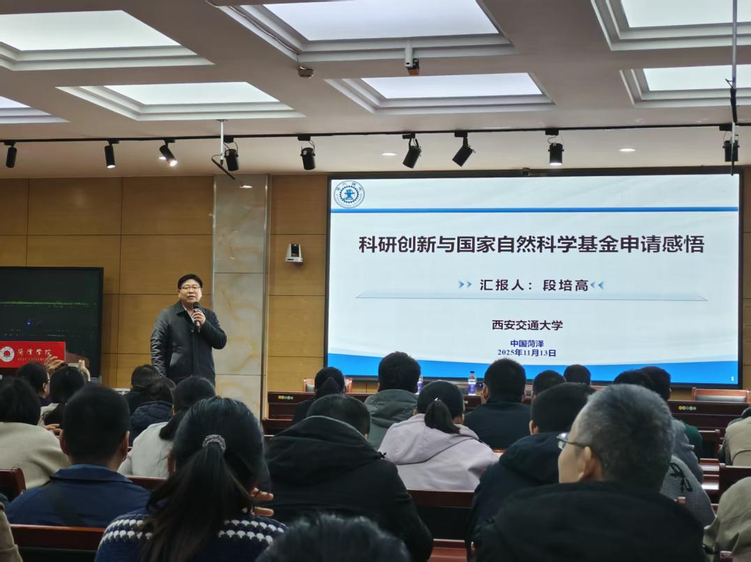 11月13日,由伟德bv1946科研处、伟德源自英国始于1946主办的“科研创新与国家自然科学基金申请感悟”专题学术讲座在老图书馆108报告厅成功举办。特邀西安交通大学段培高教授担任主讲人。