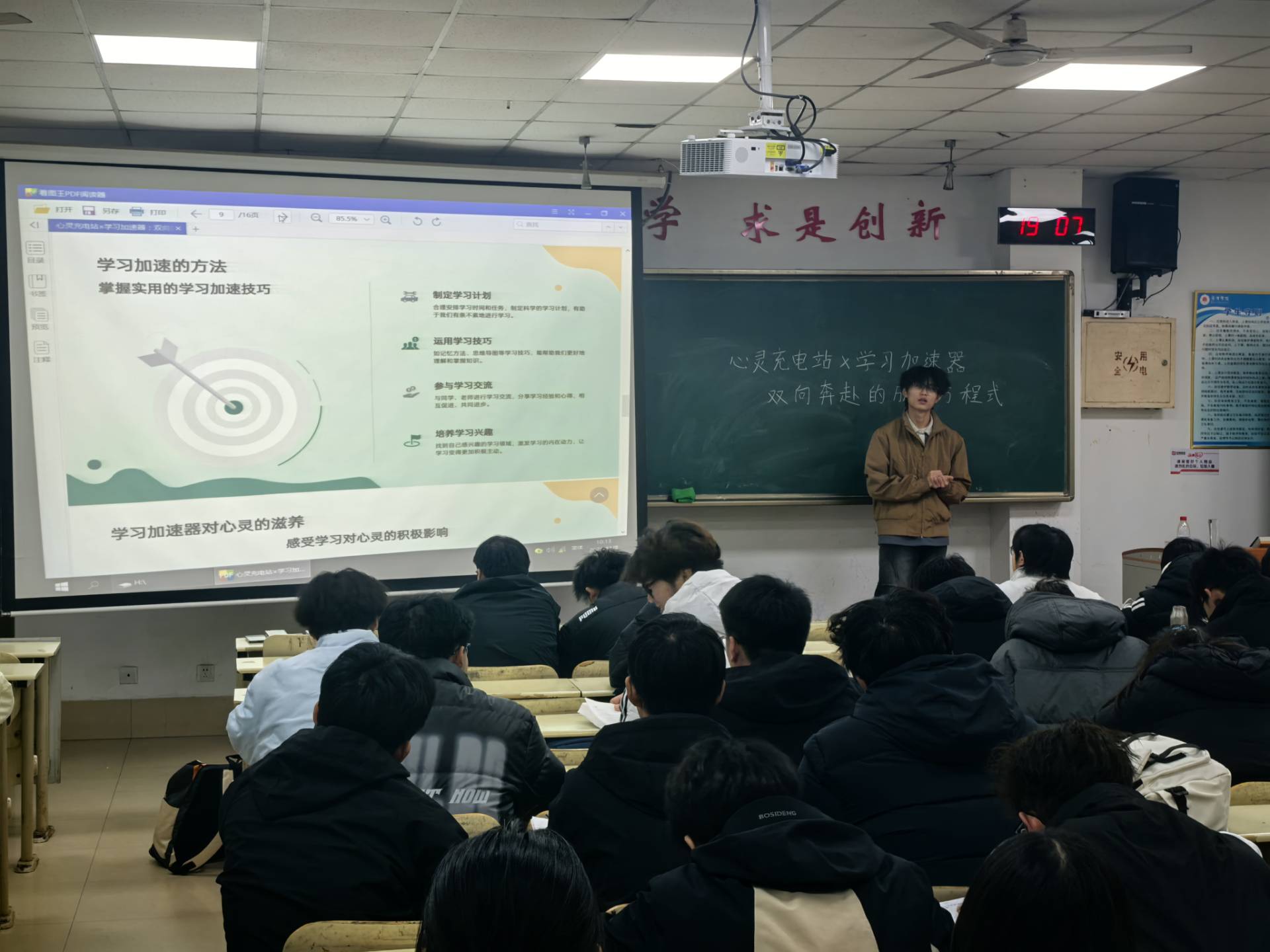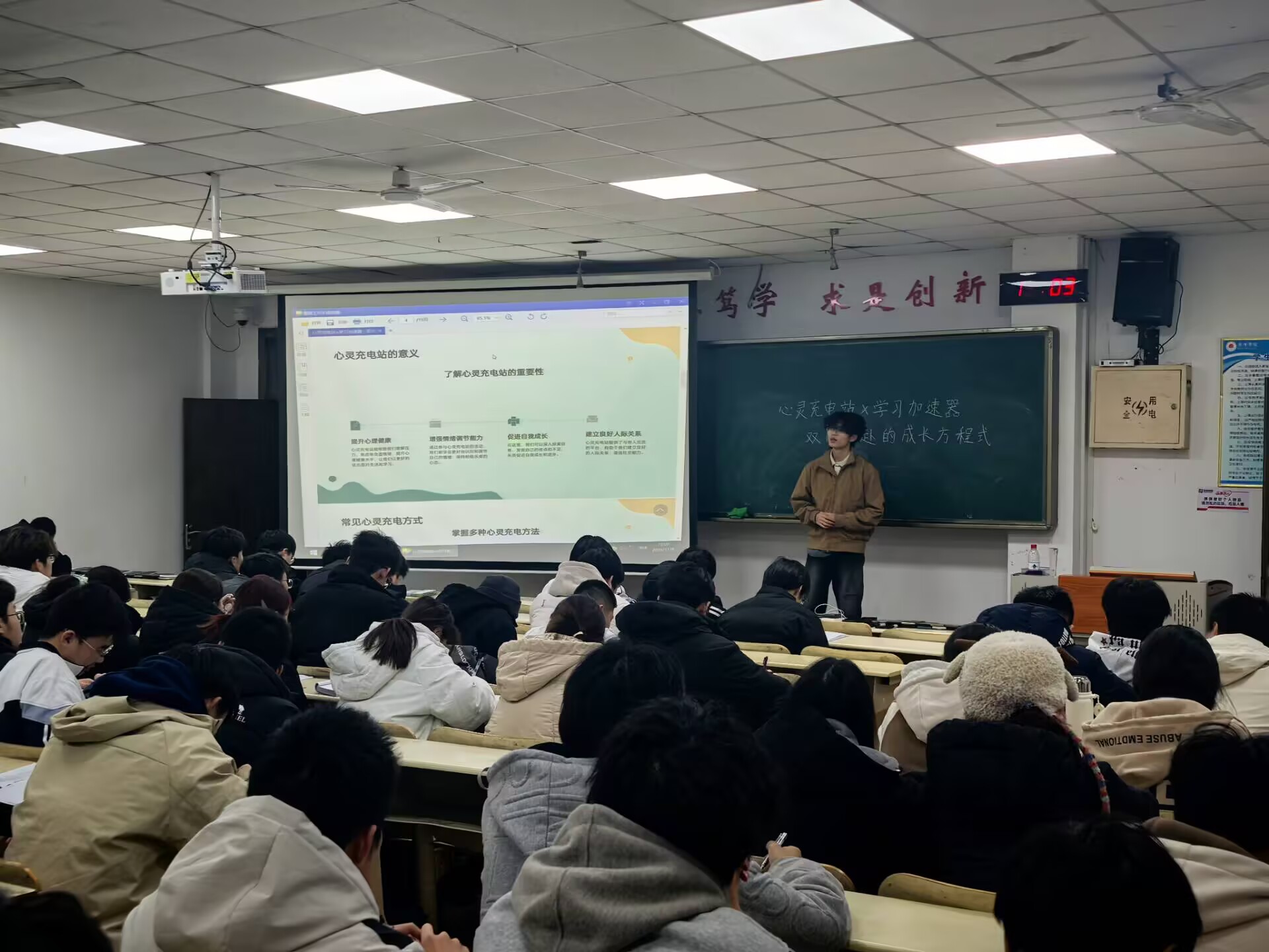 本次活动由报告人宁恒主讲,他以“心理内耗如何拖慢学习节奏”为切入点,结合学生日常学习与生活场景,分板块展开实用内容:在“心灵充电站”环节,重点讲解了“情绪调节、压力释放”的具体方法——从“情绪探险”心理小游戏的操作步骤,到心理书籍与科普视频的推荐清单,让心理委员们明确“如何帮助同学快速缓解焦虑”的落地路径;在“学习加速器”环节,演示了“思维导图梳理知识、碎片化时间利用”等提效技巧,同时强调“学习成就感对心灵的正向滋养”,让信息员们理解“心理状态与学习效率的双向关联”。