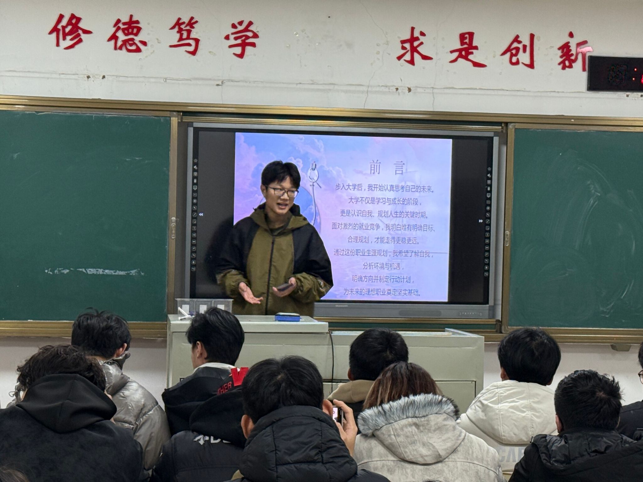 活动伊始,主持人详细解读了全国大学生职业规划大赛的赛事背景、赛程安排及评审标准,强调了职业规划对大学生成长成才的关键作用,鼓励全体参赛选手以赛促学、以赛促练,在比拼中提升自我。随后,各参赛选手依次进行展示,通过PPT与现场答辩的形式,全面阐述了自己的职业认知、自我分析、职业目标设定、路径规划及评估调整等内容。同学们立足化学化工专业特色,结合行业发展趋势,展现了清晰的职业定位与扎实的规划功底。答辩环节中,面对评委的专业提问,选手们沉着应对、逻辑清晰,充分展现了良好的应变能力与专业素养。
