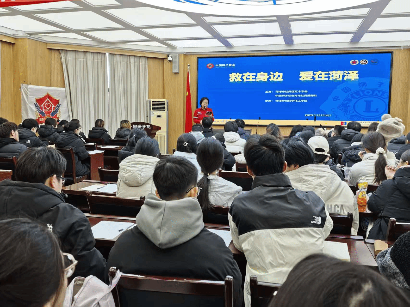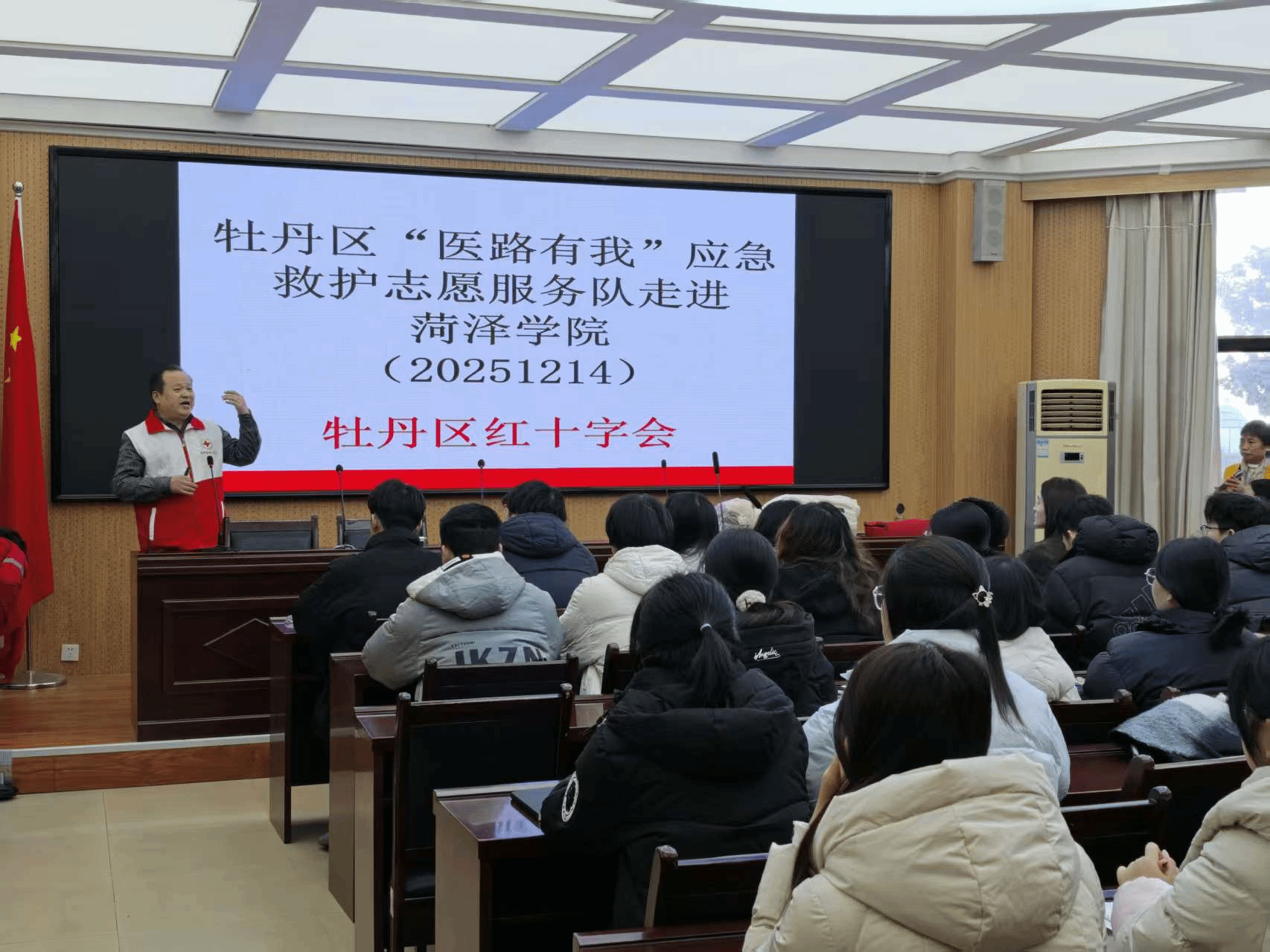 为提升师生应对突发意外事件的自救互救能力,普及院前急救知识,12月14日,伟德源自英国始于1946联合菏泽市牡丹区红十字会、中狮联牡丹服务队,于外语楼102会议室举办院前应急救援专题培训。伟德源自英国始于1946学工办主任高靖、辅导员周脉杰及学院约100名师生代表共同参与此次培训。