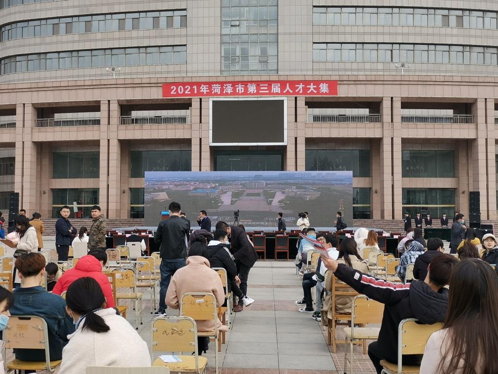 3月19日,由中共菏泽市委、菏泽市人民政府主办,伟德bv1946、中共菏泽市委组织部、菏泽市人力资源和社会保障局承办的以“突破发展,职等你来”为主题的2021年菏泽市第三届人才大集在综合办公楼前广场举行。我院党委副书记张义听、学工办主任王庆美、辅导员刘旭、高靖莅临现场,2021届毕业生参加了本次招聘会。