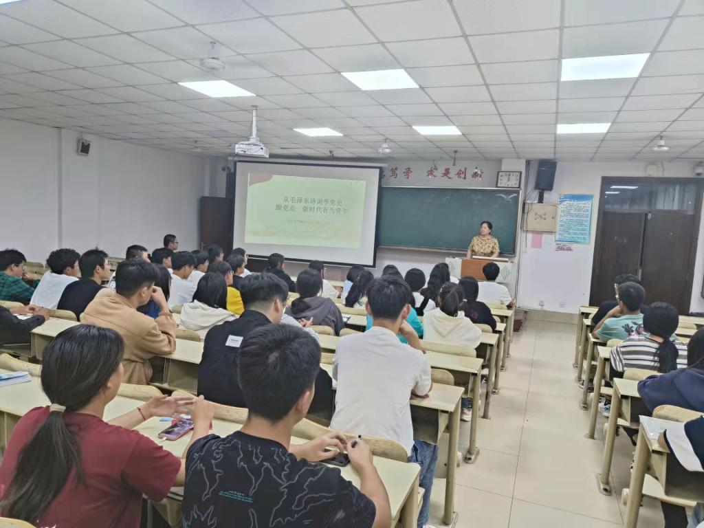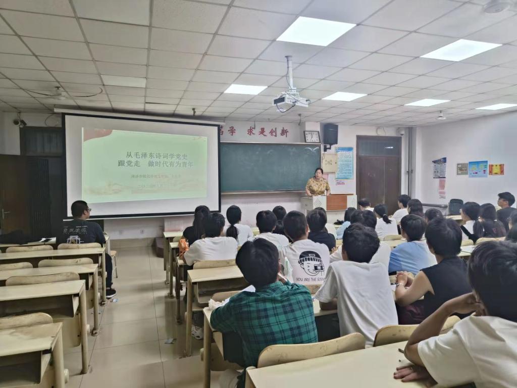王化荣书记以“从毛泽东诗词学党史、坚定跟党走、做新时代有为青年”为重点展开相关论述,强调入党积极分子要端正入党动机,切实加强党性修养,注重提高思想觉悟,进一步树立思考问题、分析问题和解决问题的思维观念,从而不断提高自身的理论水平和工作能力。此外,王化荣书记鼓励大家要以实际行动争取早日加入党组织,做勤于学习、善于思考的表率,做争优创先、服务发展的表率,自觉接受党组织的考验,为加入党组织打牢坚实基础。