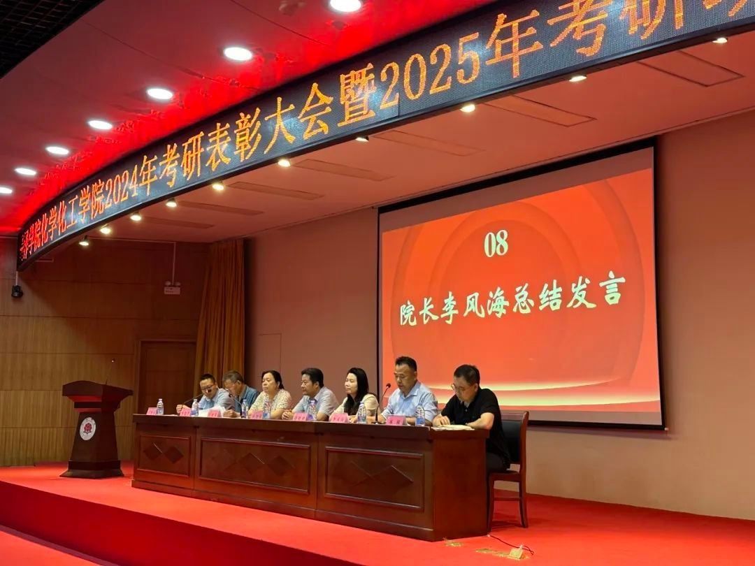 副院长林枫宣读《化工学院关于表彰2024年考研先进集体和个人的决定》,授予孙海林等98名毕业生“考研先进个人”荣誉称号;授予2022级应用化学专升本1班、专升本2班、2020级能源化学工程班“考研先进集体”荣誉称号;授予孟福娜等老师“考研优秀班主任”称号。