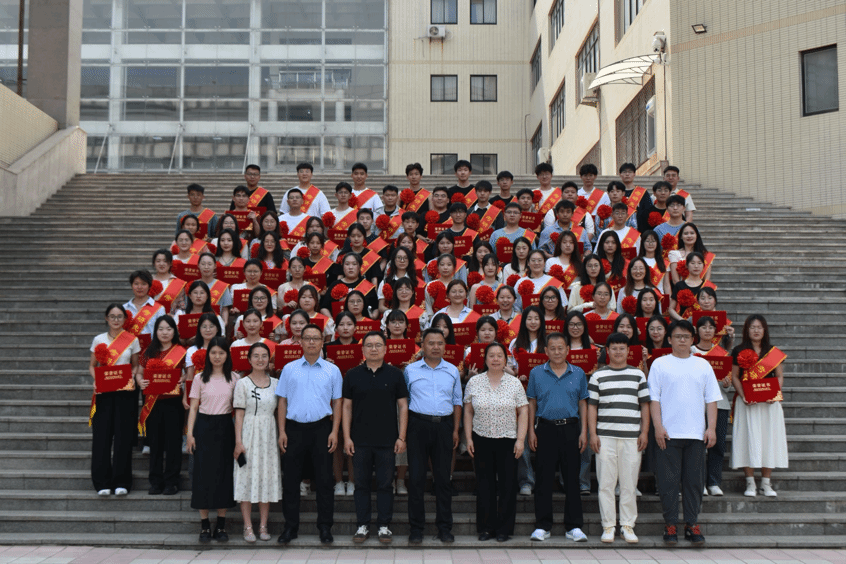 学校领导和学院领导依次为我院考研上岸学生颁发荣誉证书和奖品,并于图书馆前合影留念。