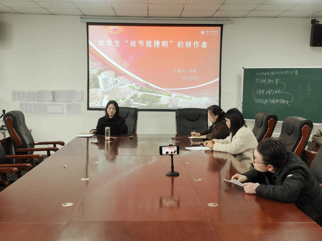 李建芳以《用心用情,服务学生成长成才》为题,从思想政治教育、学风建设、就业工作、党建工作等方面分享了自己的育人理念。他强调辅导员要紧跟时代步伐,运用新的教育理念和方法,为学生提供更加优质的教育服务。高靖做了《做学生“拔节拨穗期”的耕作者》报告,她始终坚持以生为本的原则,分别从思想政治教育、综合素质提升、学生日常工作、安全教育四个方面分享了其丰富的育人之道。随后,王振宇、付亚男、周脉杰、王娜依次分享了自己的育人经验,深刻梳理了当前工作中存在的不足,并针对性地提出了下一步的工作思路与改进措施。