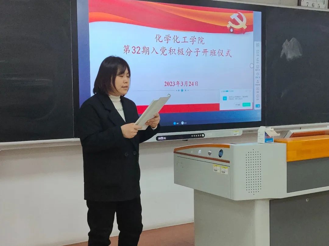 王庆美带领入党积极分子们学习了党章的有关内容,希望广大学员能够勤于思考,认真学习相关材料,珍惜每次学习机会,做到思想重视,争取最大收获。随后,党委书记王化荣从“党章基本内容”、“2022年党章修改的主要内容”、“学习党章 坚定理想信念”、“坚守党章要求 做新时代优秀青年”四个板块出发,为同学们讲述了党的理论的主要内容,并结合历史实例,不断引导同学们深入学习新时代党的理论和思想,要求同学们做到与时俱进,从思想和行为两个方面严格要求自己。最后王化荣希望同学们要不断坚定理想信念,努力做好社会主义接班人,从思想上入党,从行动上入党,争取早日加入党组织的大家庭中来。