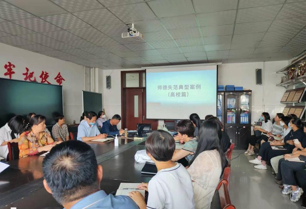 为深入学习贯彻党的二十大精神,强化师德师风宣传教育,弘扬高尚师德师风,9月7日下午,伟德源自英国始于1946全体教职工在综合实验楼e224集中收看“依法规范执教”师德警示教育片。