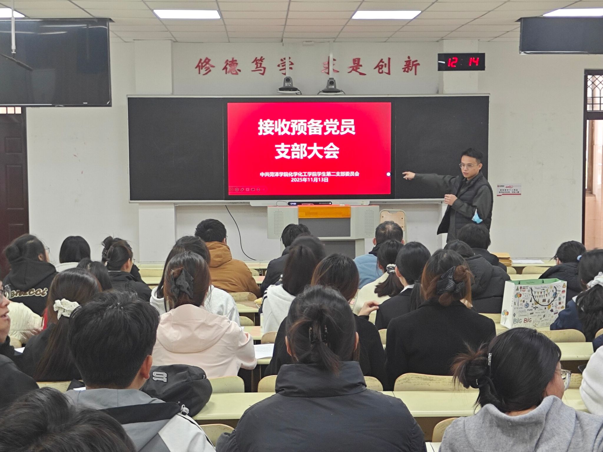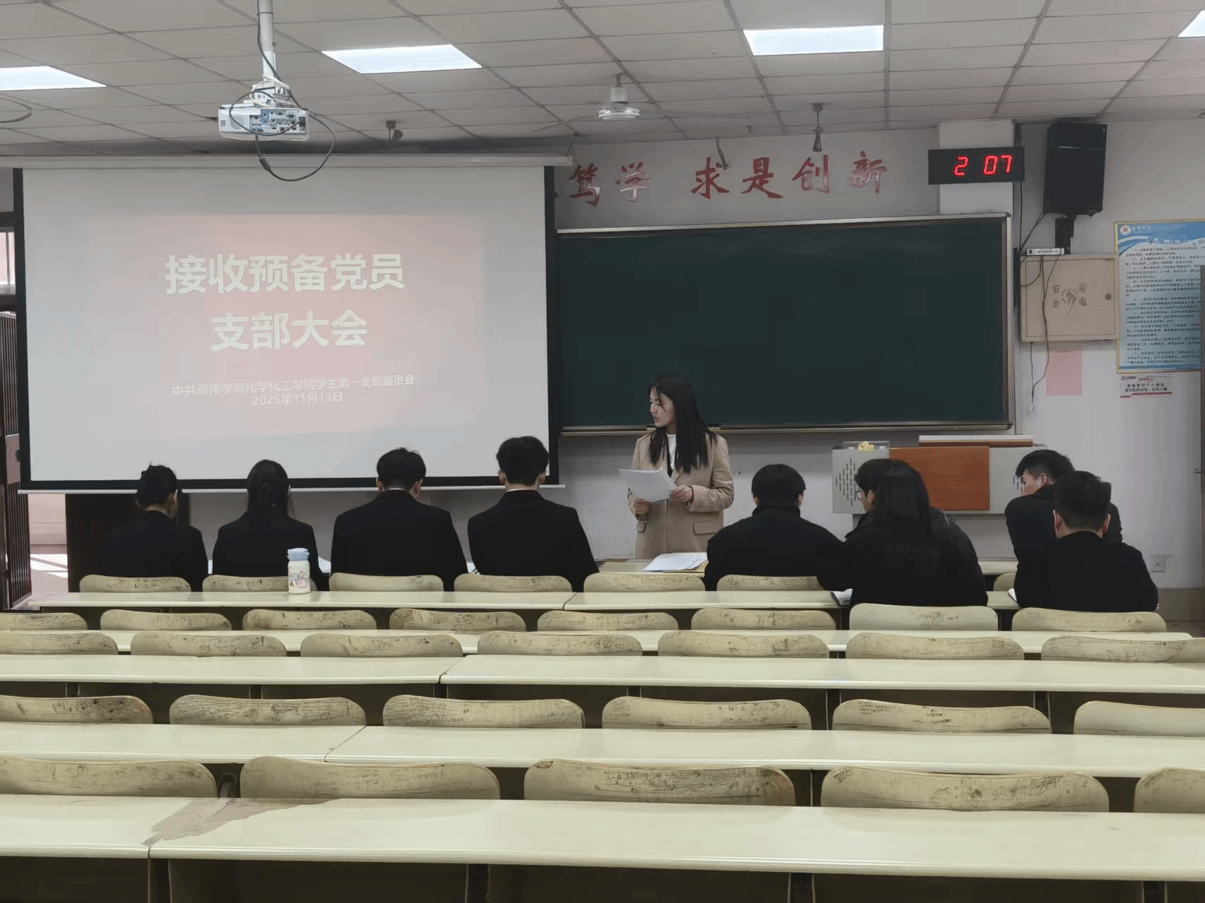 本次会议围绕是否接收党员发展对象成为预备党员展开讨论,会议伊始,高靖首先强调了本次支部大会的重要性以及本次大会的整体流程。会议第一项,党员发展对象依次宣读《入党申请书》,并向大会汇报自身对党的认识、入党动机、个人履历、现实表现以及家庭和社会关系等情况,总结自身不足,明确未来发展方向。会议第二项,入党介绍人高靖,王振宇分别介绍了对发展对象的培养考察情况,并就吸收其加入党组织表明意见,会议第三项,高靖代表支部委员会向大会报告对发展对象的培养、考察、公示情况以及对其家庭主要成员和主要社会关系的政治审查情况。会议第四项,与会党员酝酿讨论,充分发表意见。会议第五项,投票表决,全体通过。高靖向各位预备党员表示祝贺,并勉励他们进一步加强学习,努力工作,积极发挥先锋模范作用,争当一名合格的共产党员。
