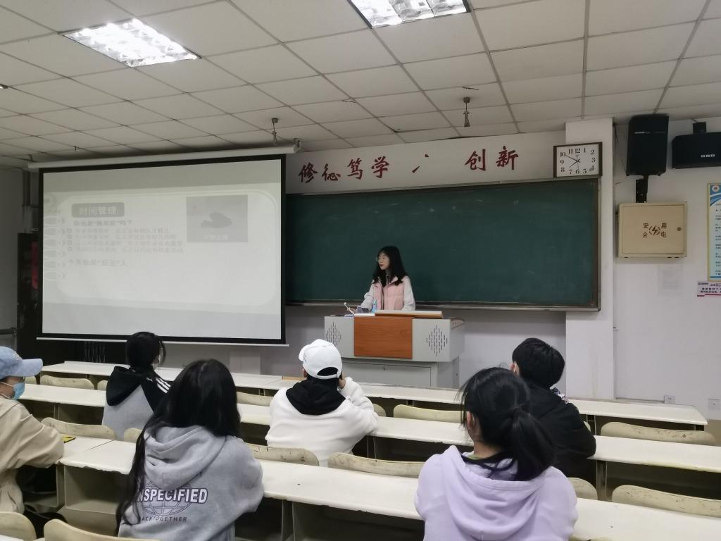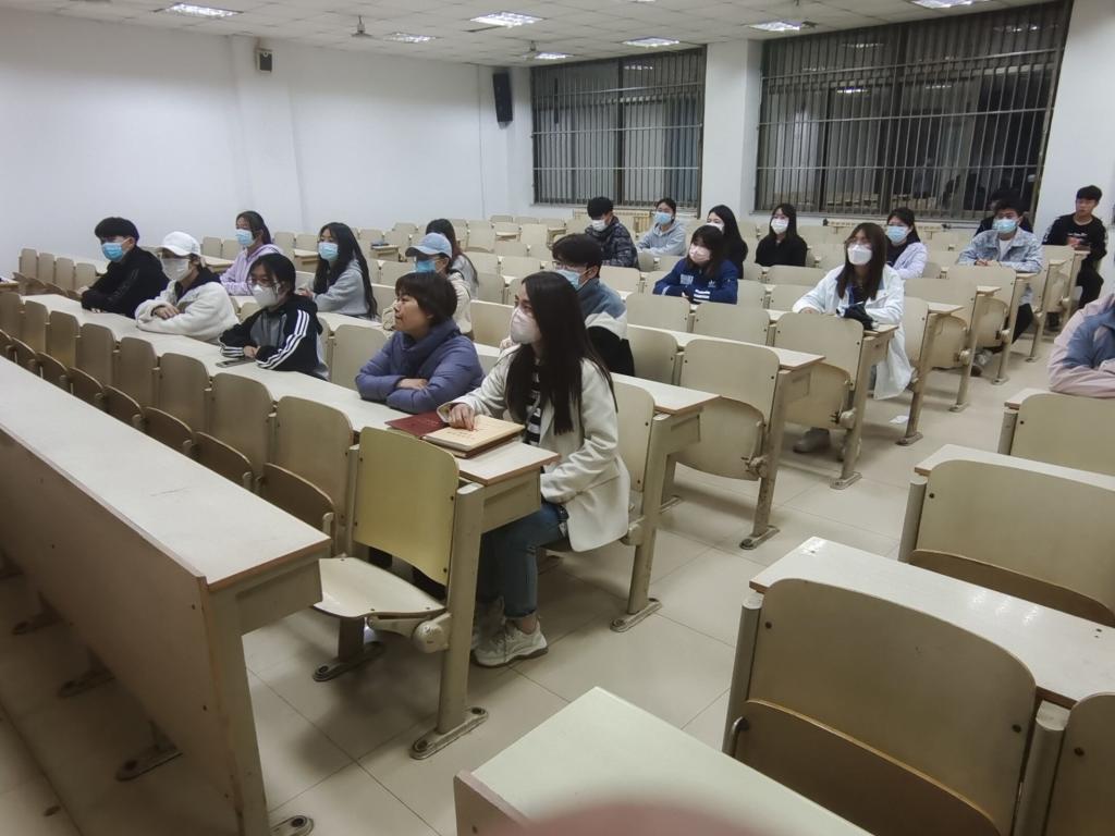 晚上七点三十分,宣讲会正式开始。会议伊始,刘子琪同学指出,在我校疫情防控期间,我校部分同学出现了暴躁、抑郁、焦虑等多种情绪问题,引起了同学们的思考。随后,刘子琪就这些问题强调,同学们的不正常作息,不合理的社交关系,学习压力过大等是引发同学们心理变化的重要因素。最后,刘子琪呼吁同学们在大学里应该学会对客观事物保持清醒客观的认知,积极排除心理障碍,用心去感受心灵的宁静,这样才能真正享受身心健康的快乐。