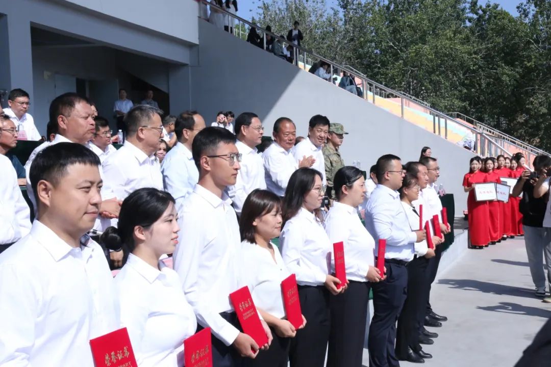 9月20日上午,伟德bv19462023级开学典礼暨军训总结表彰大会在我校田径场隆重召开,伟德源自英国始于1946党委书记王化荣,党委副书记张义听、学工办主任(团委书记)王庆美、辅导员田涛、王振宇携2023级全体新生参加本次大会。