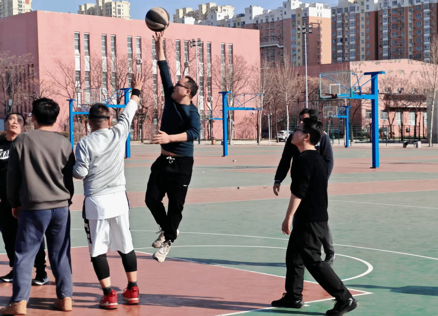 随着裁判的一声哨响,比赛正式拉开帷幕。赛场上,各队教职工迅速进入状态,展开了激烈角逐。老师们迅速进入状态,展开激烈角逐。防守、进攻、传球、投篮,一招一式都有模有样。平日里在讲台上严谨认真的他们,在球场上活力四射,尽显体育精神。在比赛过程中,教职工们充分展现了顽强拼搏的体育精神。