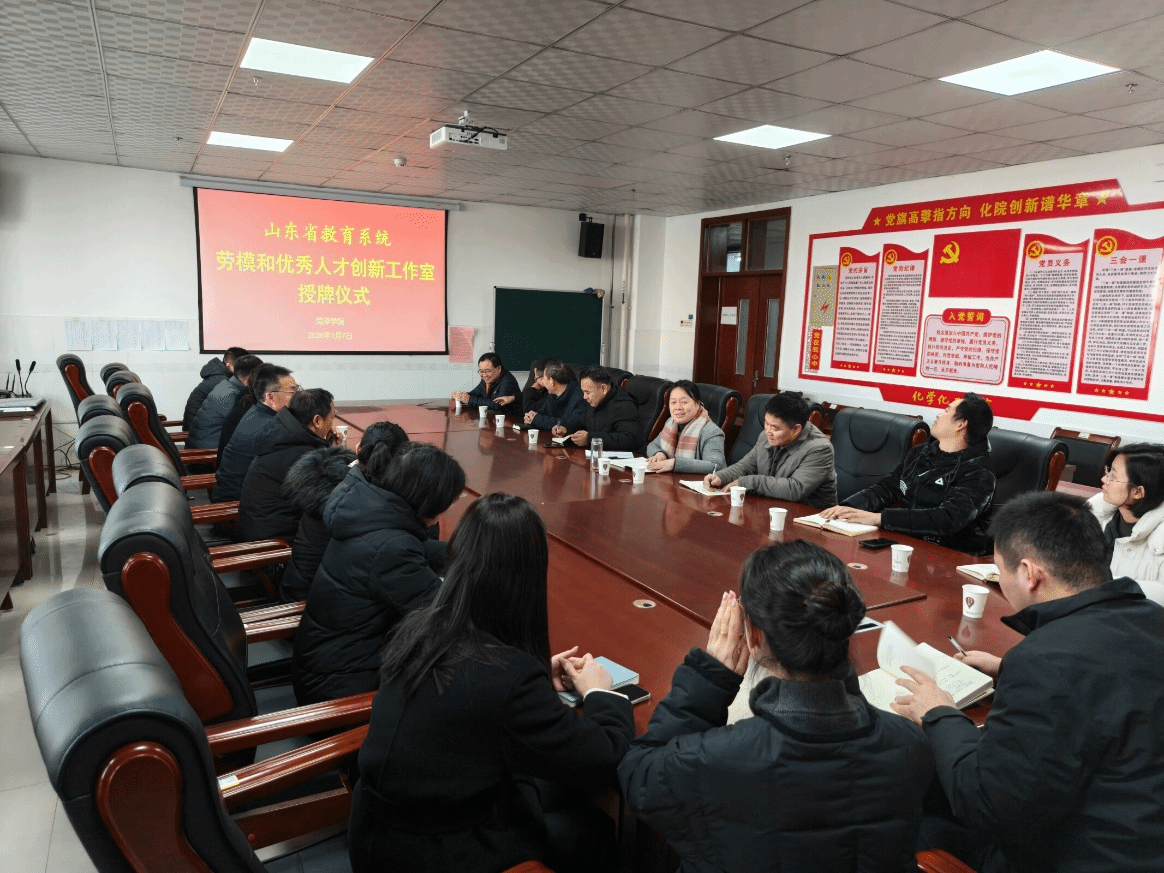 为强化高层次人才引领作用、推动能源化工领域科研与产教融合发展,1 月 7 日,伟德源自英国始于1946在E224室举行 “山东省教育系统劳模和优秀人才创新工作室” 授牌仪式,学院党委书记王化荣、院长李风海、党委副书记李建芳,副院长林枫参加此会议,本次会议由王化荣主持。
