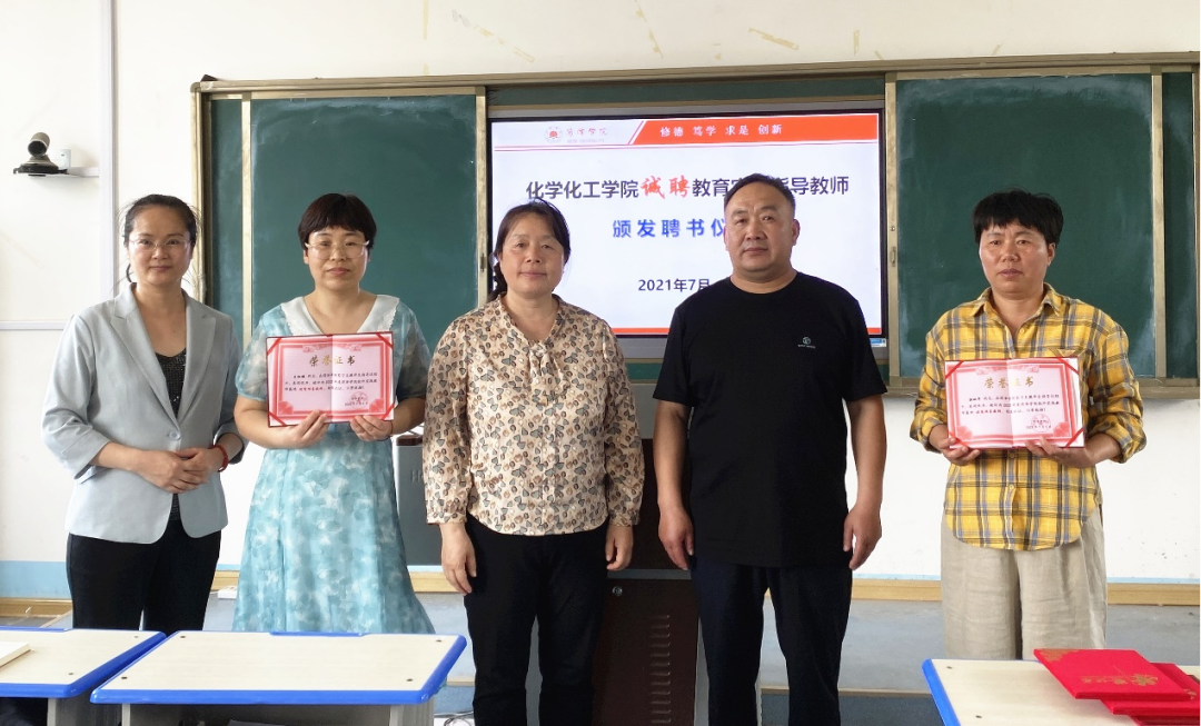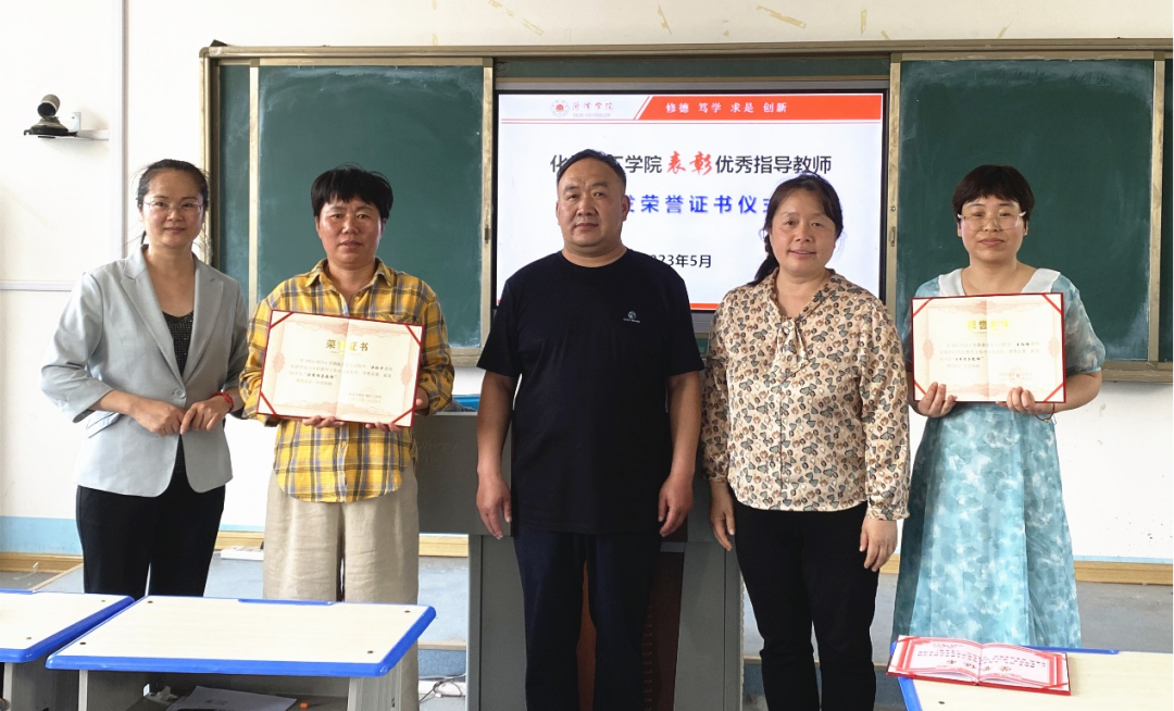 王化荣书记详细介绍了化学师范专业认证专家在教育实践基地现场考察的时间以及对实践基地考察的主要目的、主要内容和方法,指出开展师范专业认证工作有利于校际联合办学模式的推进,能够有效推动专业人才培育模式的创新,将切实推动师范专业内涵建设,不断增强师范专业服务基础教育能力,对高校和中学教育具有双向促进作用。随后,王书记为王红梅和洪秋华两位老师颁发“教育实习基地指导教师”聘书和“优秀指导教师”荣誉证书。成晓琳老师就师范专业认证的相关问题进行了详细介绍,并针对专家到实践基地的访谈内容与各位领导和实习指导老师进行了分析讨论,加深了老师们对师范认证的理解。