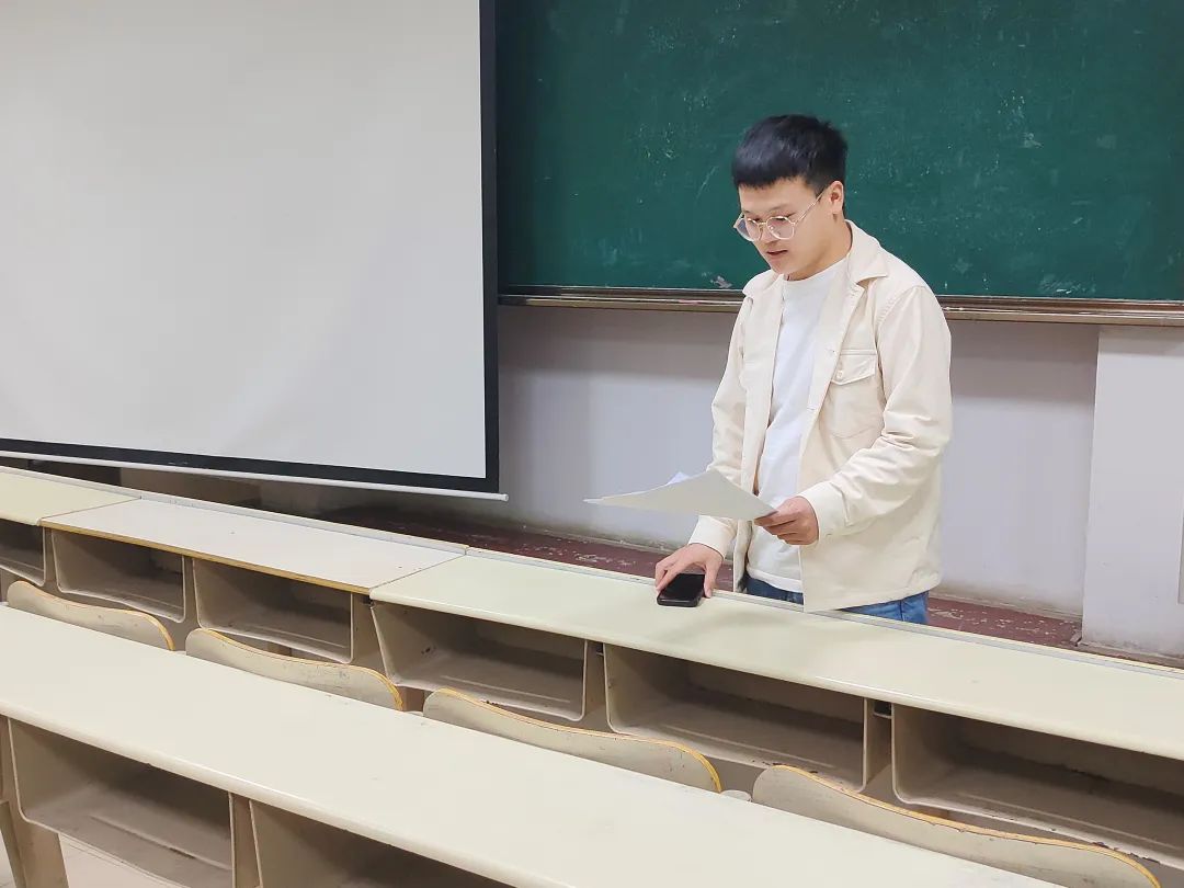田涛老师着重指出心理健康教育对学生全面发展的重要性,同时也向同学们说明举办此次心理健康剧比赛的重要意义,希望同学们能够用心对待。排练过程中,同学们紧紧围绕大学生心理问题、性格问题、社交问题、情感问题,从人物台词、表演神态、舞台站位、情感表达等方面认真排练,展现了良好的表演状态。田涛老师高度肯定了同学们认真严谨的排练态度,指出了同学们在排练过程中存在的不足,并给同学们亲自示范,从台词、情感情绪的表达等方面提出了一些合理性建议。希望同学们能够继续努力,争取把最好的表演状态呈现在舞台上,为学院的荣誉添彩。