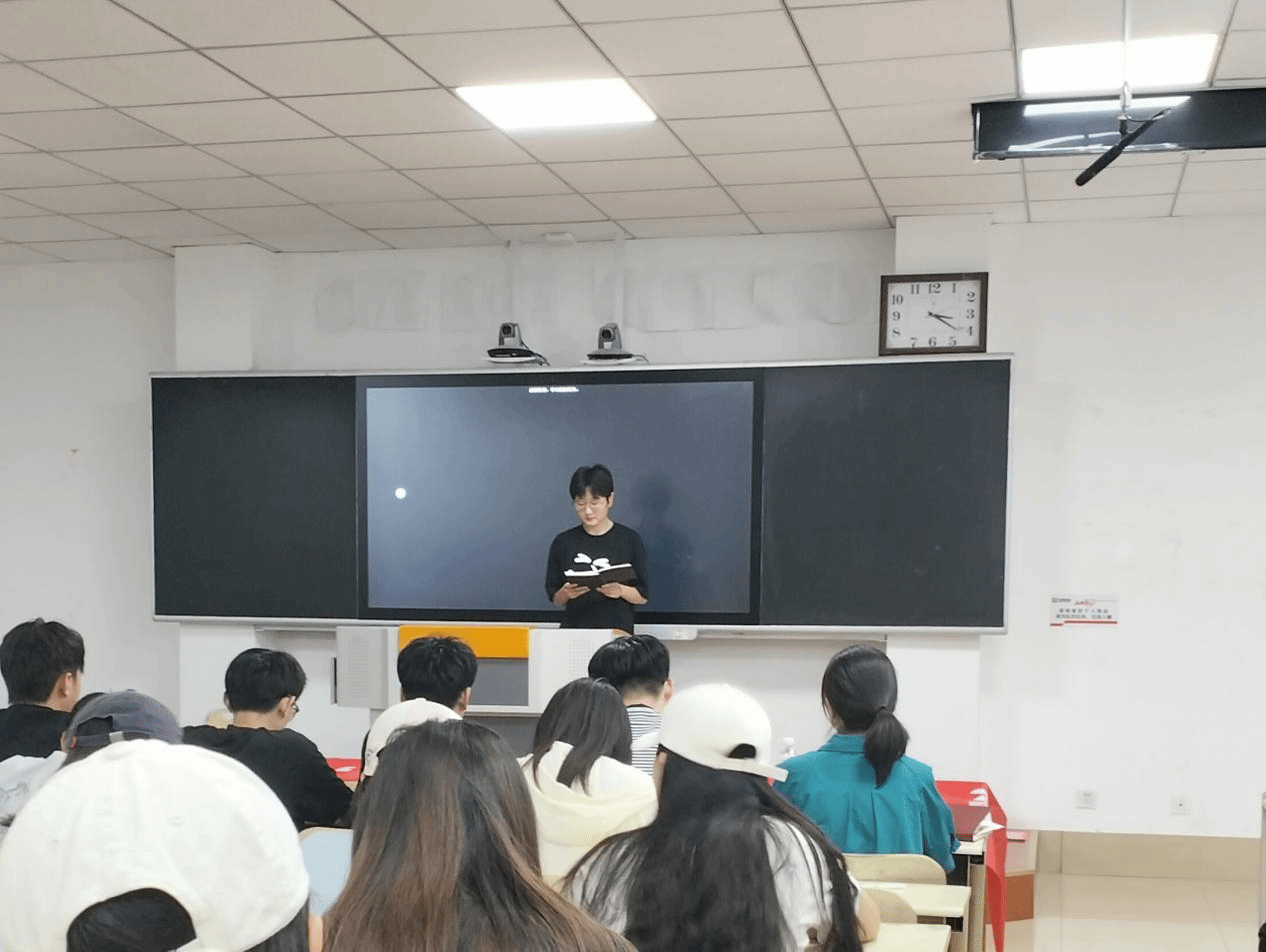 会议伊始,高靖总结了上半年的工作成果,各种大小型活动的成功举行得益于学生会各个部门相互协作,对大家的辛勤工作表示衷心的感谢。同时,对下半年的工作做了相关计划,加强学风建设,增强学生学习氛围,加强早晚自习管理,完善学生量化细则,宿舍管理等等。统计了学生干部占考研上岸总数的大部分,肯定了全体学生干部在学院中的地位。接着,杨晓娜和吕成德作为学生会干部代表汇报了学生会一学期以来的工作成果,也指出了当前工作中存在的不足,强调学生干部要以身作则,树立良好的榜样形象,希望以更加饱满的热情和高度的责任感投入到工作中去。