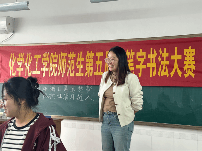 比赛过程中,选手们各显神通,有的字迹遒劲有力,宛如化学反应中的激烈碰撞;有的则温婉细腻,如同分子间的微妙平衡。每一幅作品都凝聚着选手们对知识的深刻理解和对书法艺术的独到见解,不仅展现了他们扎实的专业基础,更体现了他们作为未来教师的责任感与使命感。