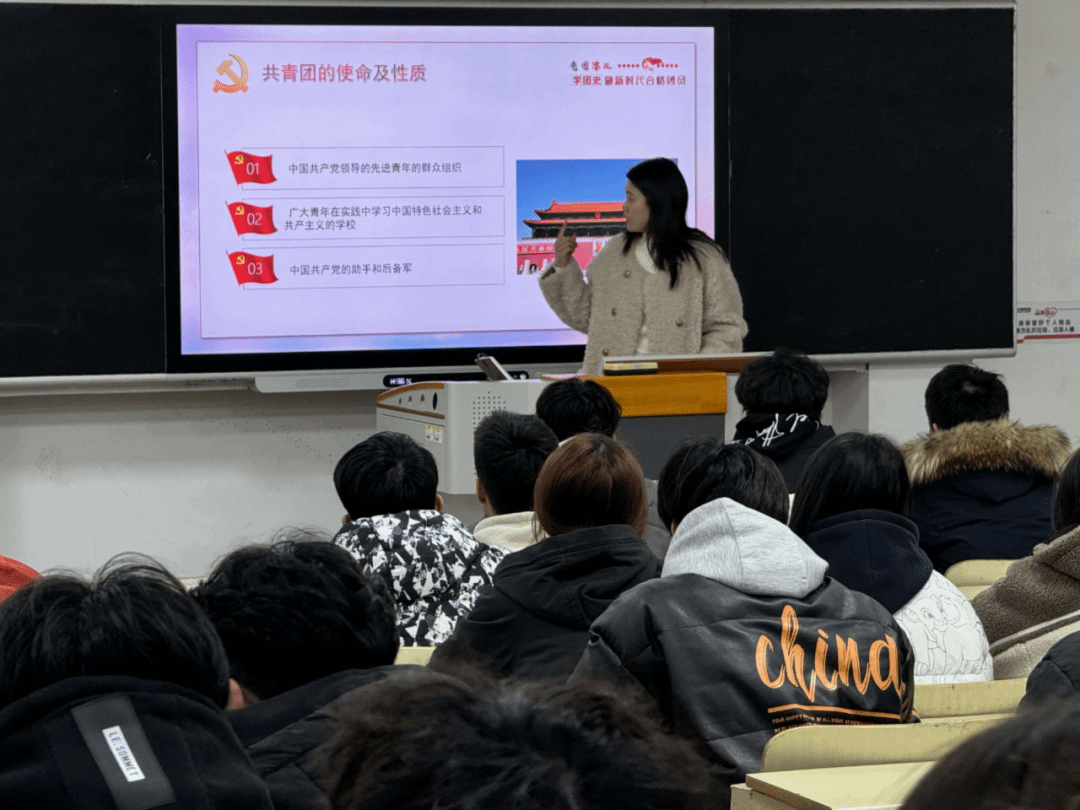 随后,辅导员付亚男、王娜、周脉杰围绕“党团思政”“改革开放”“空想社会主义”等多个主题展开了深入的探讨与教育。他们特别针对入团积极分子进行了详细的思想政治教育,内容涵盖了党史、新中国史、改革开放史、社会主义发展史以及团史团章等团内规章制度和基本知识。通过这次教育,学员们深刻体会到了共青团始终与党同心同德、共同奋斗的光荣历史。