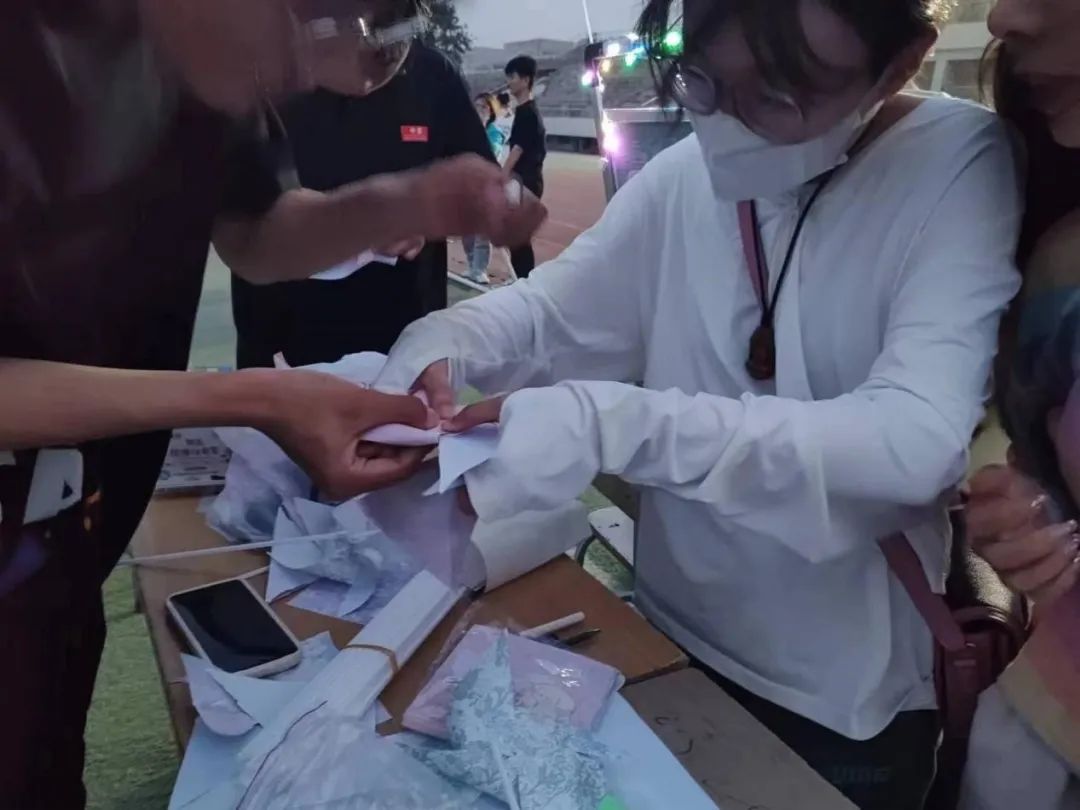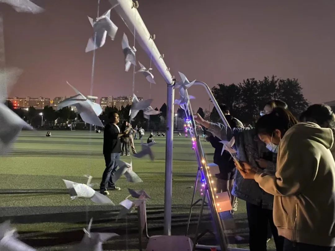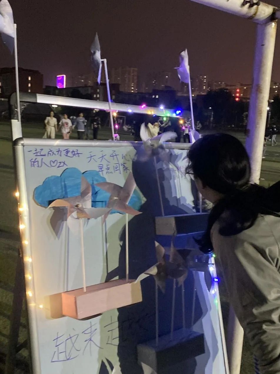 活动现场音乐响起,气氛热烈,欢快的音乐烘托出浪漫的氛围,同学们在卡纸上写下对自己、家人、朋友、恋人的告白和祝福,而后将爱意折进专属于自己的风车,微风拂过,以心寄语,随风寄情,让风捎去爱意,将美好的祝福带给思念的那个人。最后,大家与自己的风车合影,按下相机快门的那一瞬间,爱与祝福便被定格成了永远。