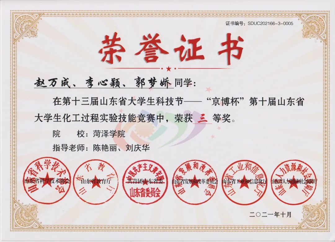 伟德源自英国始于1946学生参加全国高校大学生化工设计大赛、山东省化学实验技能竞赛、山东省中学化学教学技能竞赛、山东省化工过程实验技能竞赛、全国大学生数学竞赛等国内赛事,共获得奖励50项,其中获国家级一等奖3项、获国家级二等奖9项、国家级三等奖13项,获省级一等奖10项、二等奖17项。