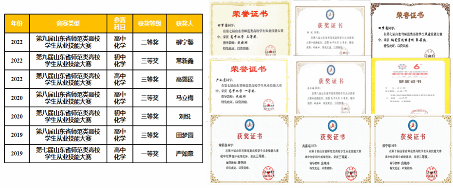 近年来山东省师范类高校学生从业技能大赛获奖情况