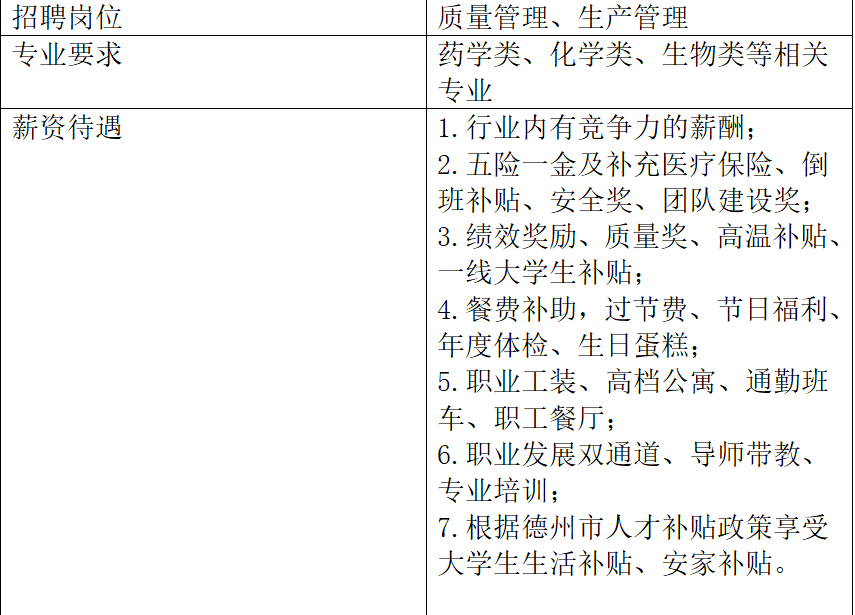2、招聘专业:药学类、化学类、生物类等相关专业;