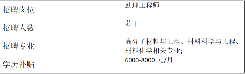 2、招聘专业:高分子材料与工程、材料科学与工程、材料化学相关专业;