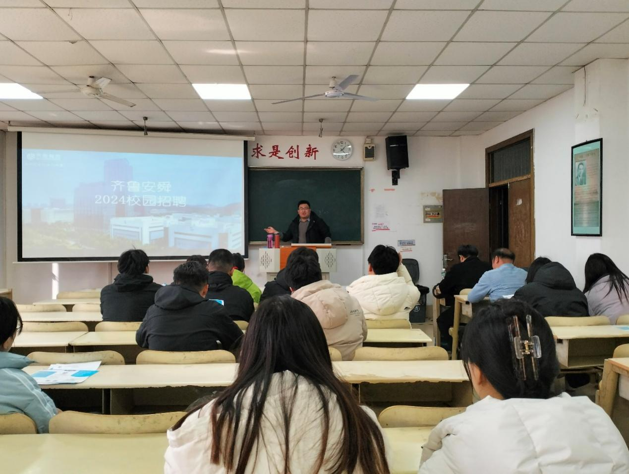 齐鲁制药集团拥有多个子公司,多年来,集团以高素质的研究队伍和专业高效的研发能力为国内医药行业做出了巨大贡献。另外,集团资金雄厚,面向全球可持续发展。招聘会上,主讲人就产业布局、价值创造、人才需求、薪酬福利等多方面展开讲述。然后,对于同学们的相关疑问,公司负责人认真且耐心做了详细介绍。最后,公司负责人希望同学们找准自身定位,从而选取适合自己的职位。