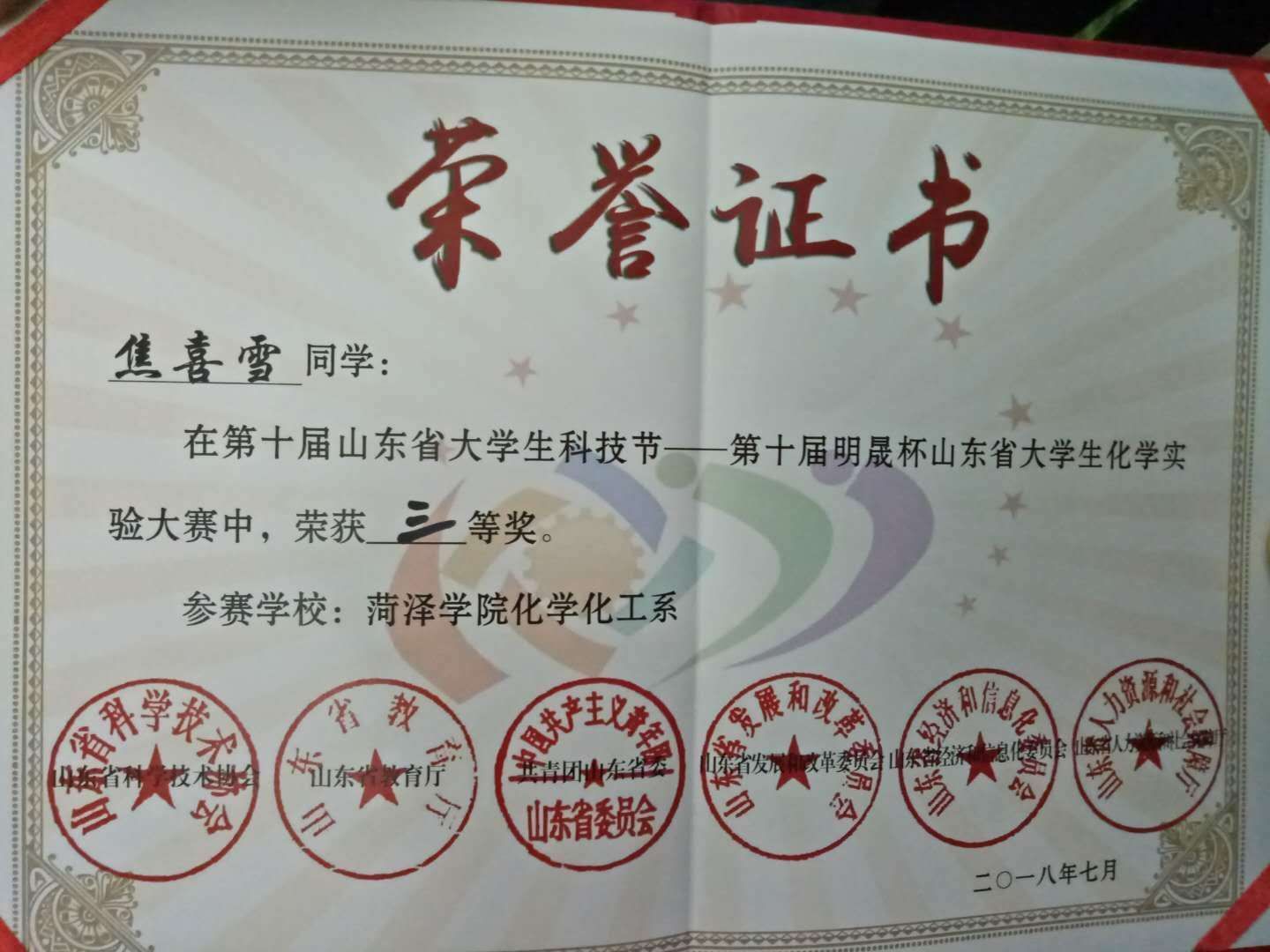 山东省教育厅从业技能大赛获奖照片