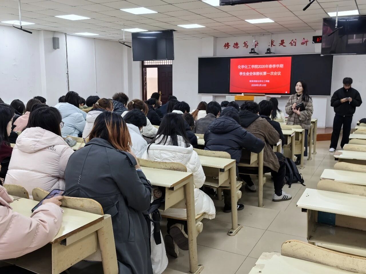 会议伊始,高靖明确各部门近期具体工作任务与分工,强调权责清晰、协同发力,并要求各部门结合自身职责,规范开展三月“雷锋建设月”特色志愿活动,确保活动落地见效。随后,周脉杰围绕五月份运动会等大型活动部署工作,要求各部门配合体育部做好筹备、组织及后勤保障工作,广泛动员学生参与,展现学院学子风貌;王娜聚焦宣传与心理工作,要求做好活动宣传、正能量传递及学生心理疏导工作。最后,高靖再次强调部门分工协作与工作汇报的重要性,确保各项工作有部署、有落实、有反馈。