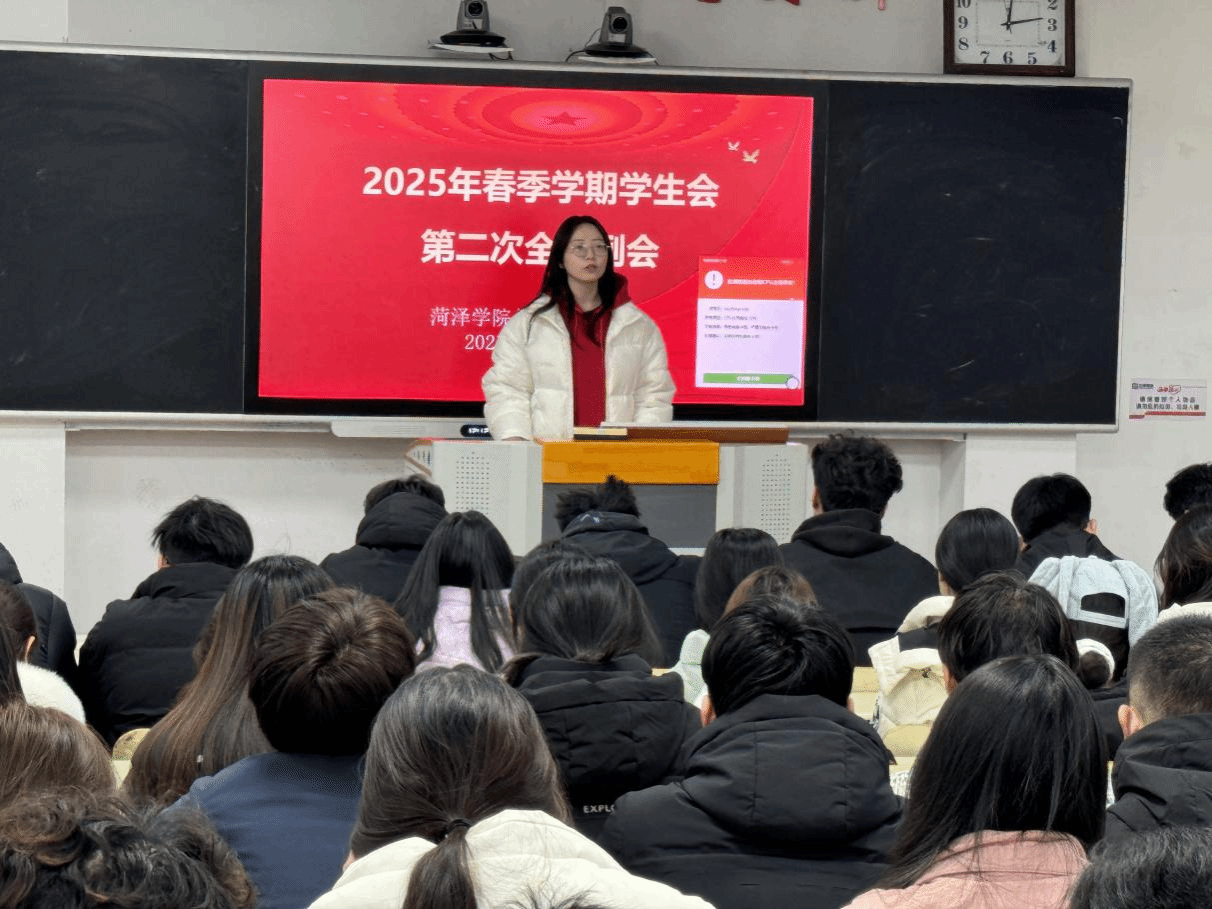 随后王娜对学风引领、校园文化建设提出三点期望:一要站稳政治立场,争做思想引领的“排头兵”;二要聚焦主责主业,平衡学业与工作的关系;三要创新服务形式,提升师生满意度。之后周脉杰对以后工作的安排进行合理规划和分配,鼓励大家在工作中积极沟通、相互支持,认真负责的投入到学生会的工作当中。紧接着由学生代表发言,通过讲述红色思想,进一步提高了同学们的道德认知,使同学们深刻明白青年责任重大,担任着国家的未来。
